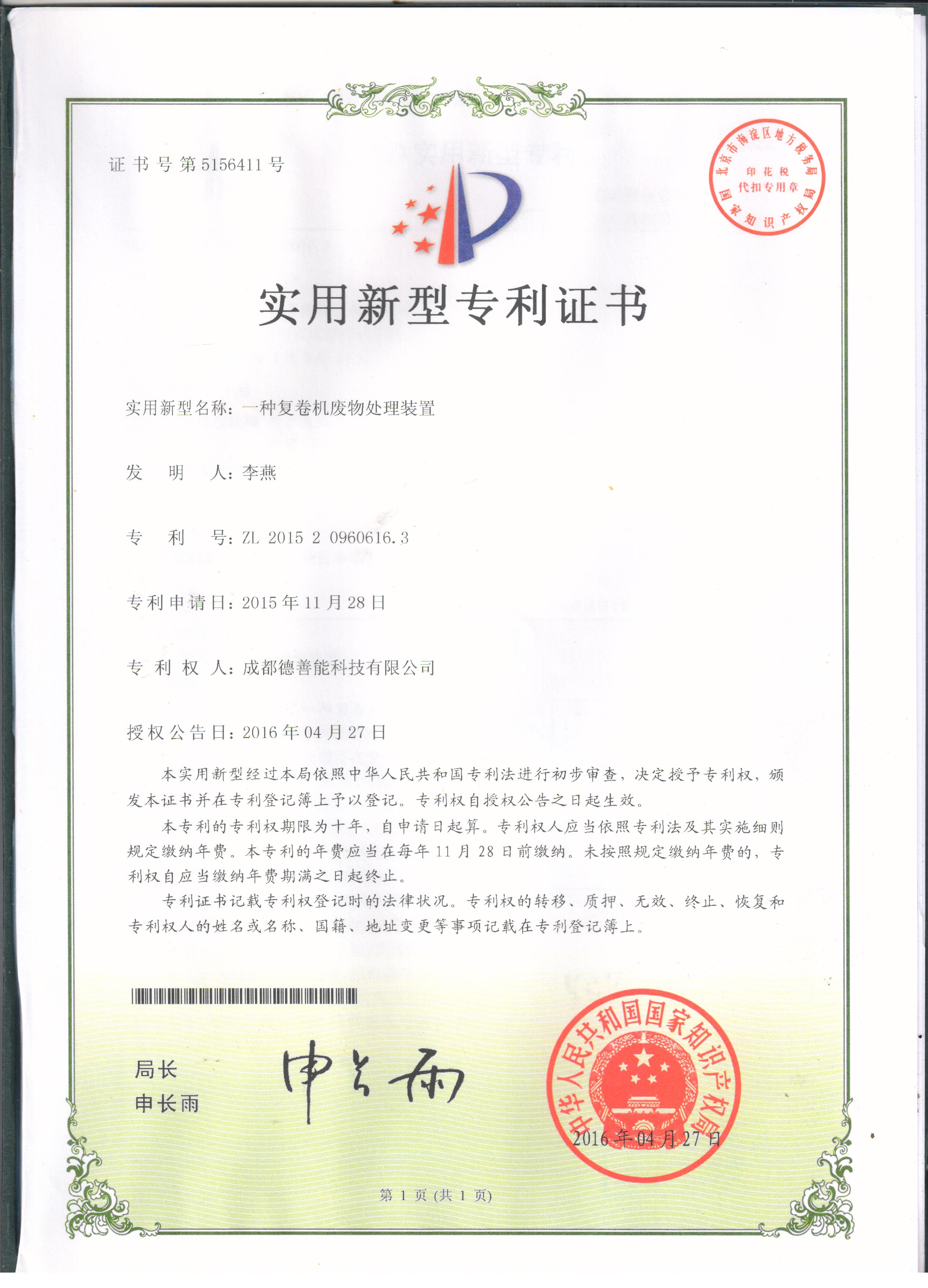 专利-一种复卷机废物处理装置